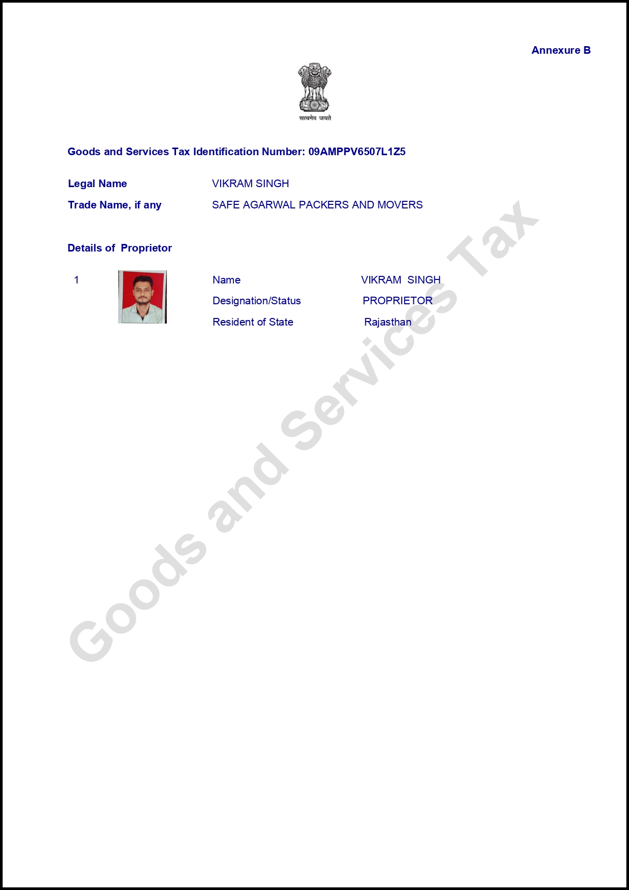 Registered Trade Name: Safe Agarwal Packers And Movers